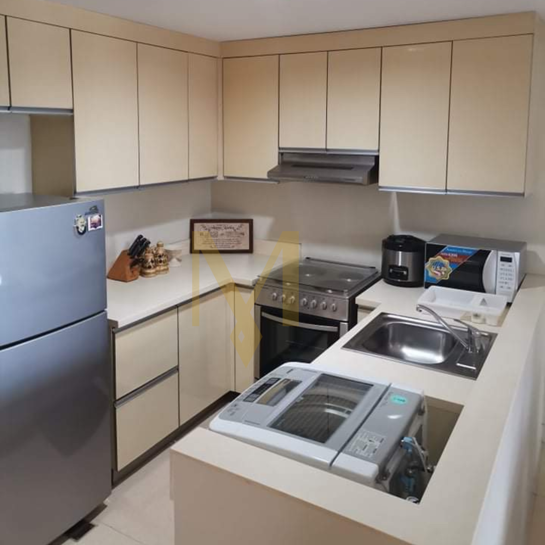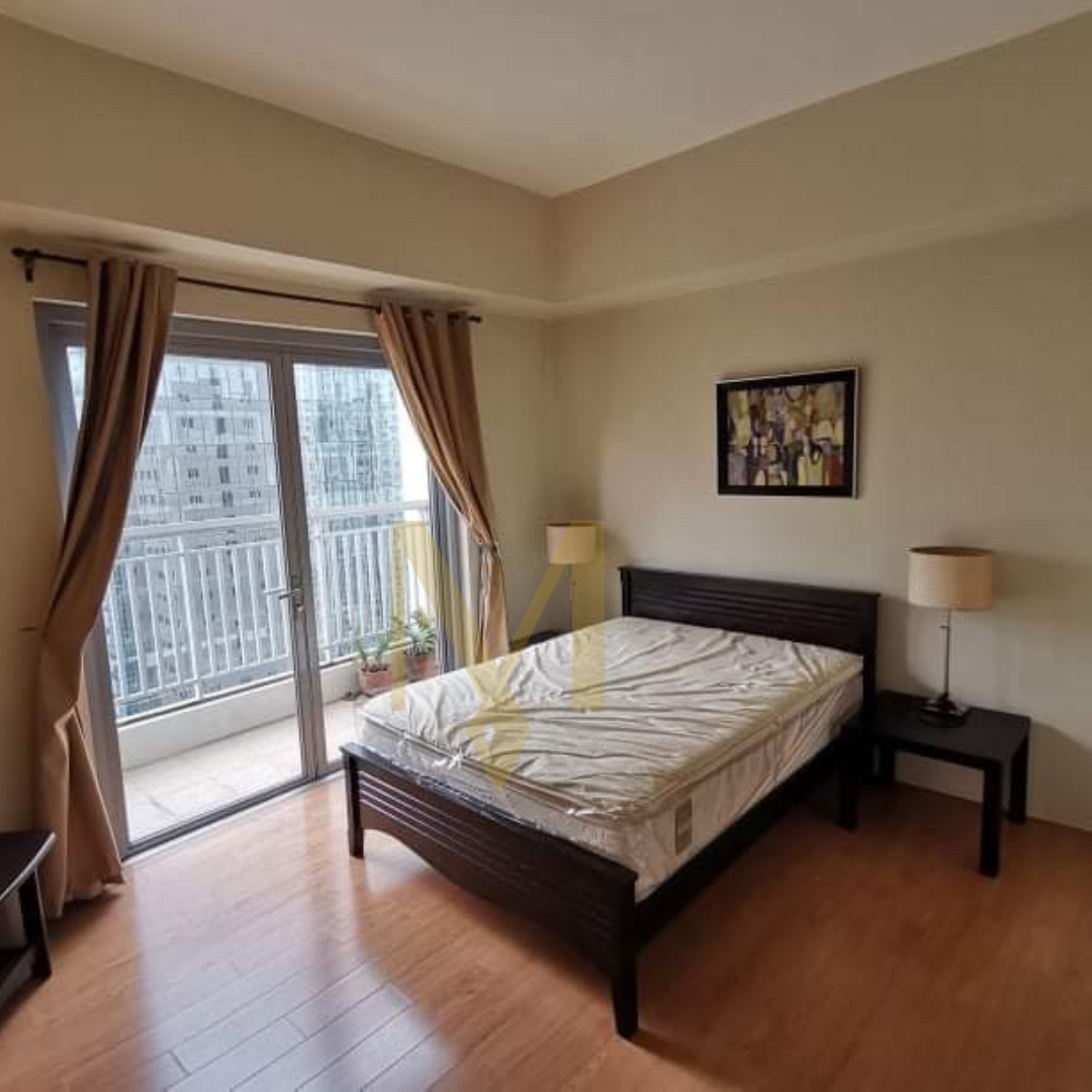 Furnished 1-Bedroom Unit, features a spacious balcony and modern furnishings