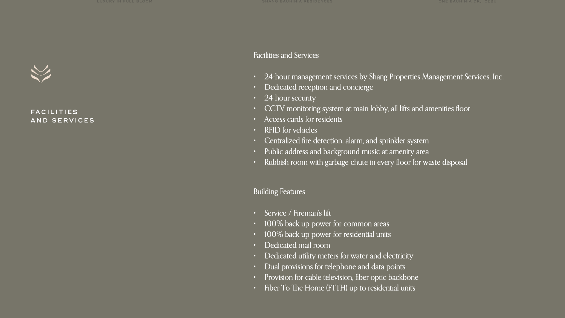 Shang Bauhinia Residences offers a range of luxurious features and amenities, designed to provide an elevated living experience in Cebu. Here are the key highlights: